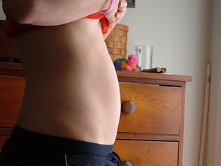 Laina is all bubbles and smiles as she examines her belly in the mirror. Smooshing it out, sucking it back in, then pushing it back out again. She stares at her navel like she has x-ray vision that lets her see the baby growing inside.